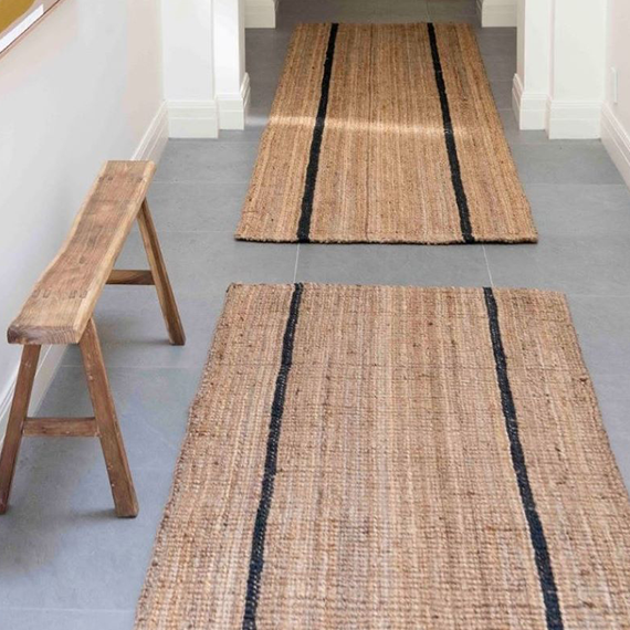 This elegant, classic style runner is a stunning statement and is sure to add to the aesthetic of any home. Handcrafted from 100% Natural Jute with a graphite stripe running lengthways down each side.