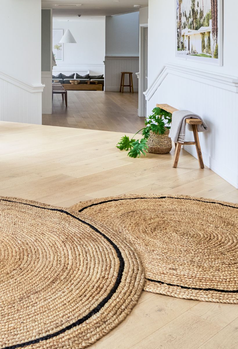 Our collection includes a range of 100% Natural Jute and Jute & Wool rugs, available in various sizes, from door mats to runners and area rugs. These rugs are handcrafted in the picturesque region of Kerala, India, by a family business with over 40 years’ experience. Each piece is unique, a testament to the time-honored craftsmanship of the local artisans, who pride themselves on being in “Harmony with Nature”.